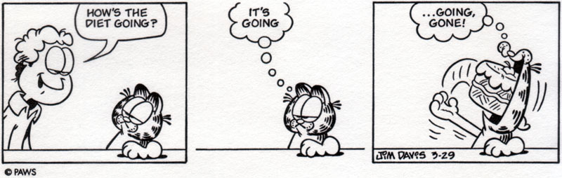 Our good friend Garfield makes the same comments that we all think about while we’re dieting:
